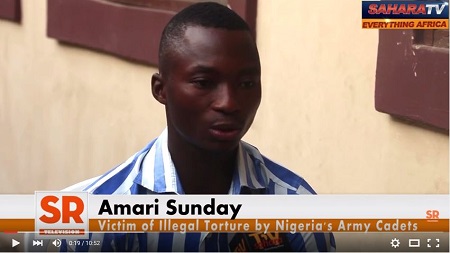 Describing how the torture started and lasted, Sunday Amari, a victim of torture by some army cadets in a recent explosive footage told SaharaTV crew that he now flees from army personnel in uniform out of psychological pains.
