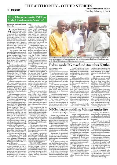 EFCC, DSS raid ex-VP Sambo's office - http://goo.gl/lFoHSCBianca: Only my children can inherit Ojukwu's property - http://goo.gl/qtu5ypFederal Roads: FG to refund Anambra N30bn - http://goo.gl/v8YTid