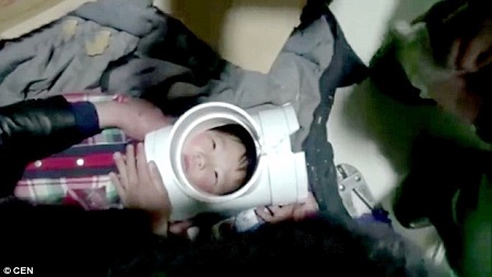 Firefighters said that they attended the scene and when they saw the child with his head in the tube, they felt sorry for him.