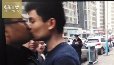 punches, Huang planted a kiss on the officer's mouth. His actions