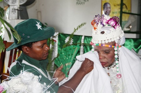 The gathering once again sang as one follower, Mary, wiped “Mai Maria’s” tears and sprinkled deodorant on her clothes.