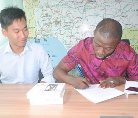 Alao Malaika signing his contract papers
