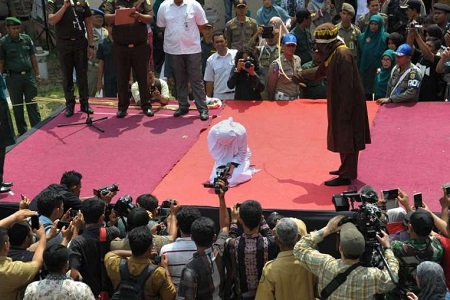 law in Indonesia’s Aceh province, including a young unmarried couple who