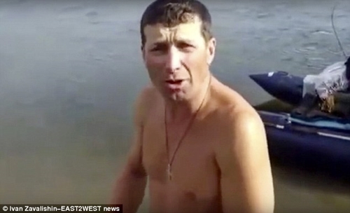 Commentary on the video says: 'This is a polar region - the land of tough fishermen and strong nibbles.' The man with the camera, called Alexei, warned: 'Be careful there. There is a hole there underwater. I've just caught some grayling there. Take care.'