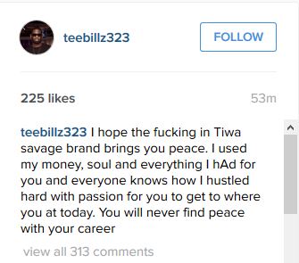 Tee Billz alleged that Tiwa's mother used diabolical means to steal