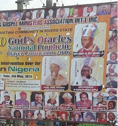 According to the poster, 'Evangelist' Dame Patience Jonathan will be appearing as a guest speaker.