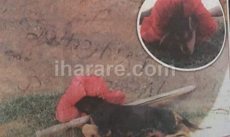Body of the dead dog and red cloth (Photo:iHarare)