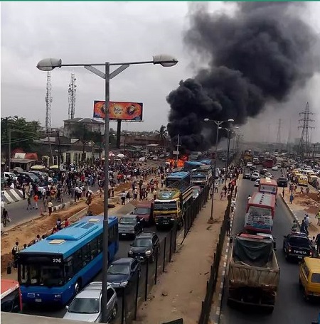 bus-stop close to Total filling station in Lagos leaving one woman dead