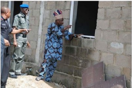 Gov. Amosun at the collapsed building site
