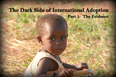 I'm going to be publishing seven posts in this series over the next two weeks. A lot of what you read will turn your stomach. You won't want to believe it. I didn't either. I'm only going to post a small fraction of what I've discovered. It wasn't very hard to find, but most of the time, Christians have been willingly ignoring it. I believe it is absolutely crucial that the American adoption community, and especially those in the Christian community, come to grips with what is really going on.