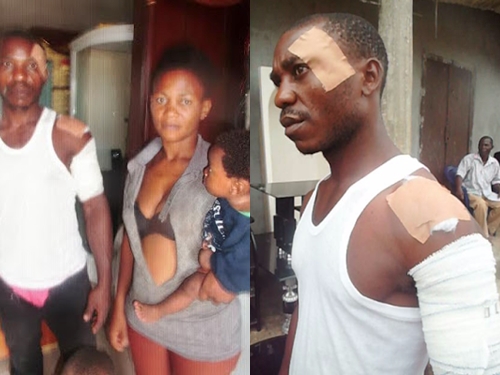 handcuffed beaten and while his wife Ebele Paul and their little child