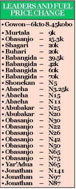 Below is a list of all the fuel price differentiations under successive administrations in the 55-year old country: