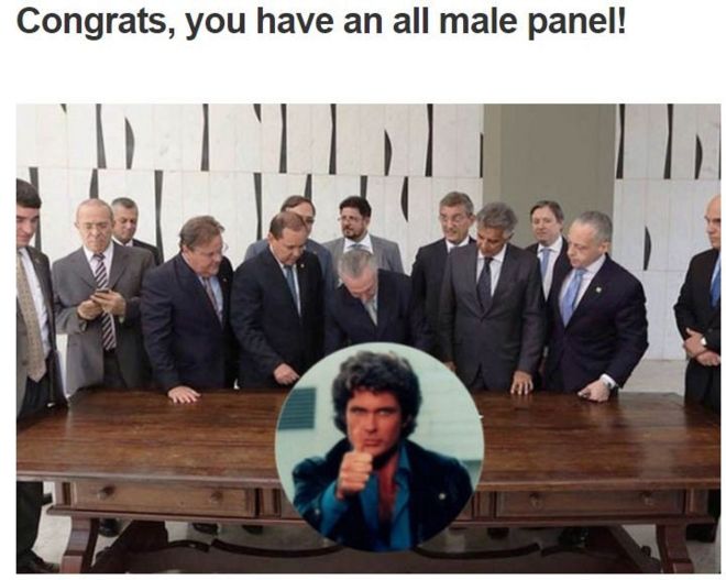 Image caption A Tumblr page has been set up documenting all male panels in recent months (credit Saara Särmä)