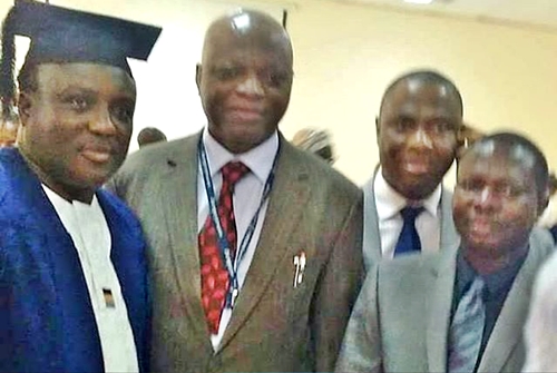 Professor Bayo Okunade and the Registrar, Professor O.I. Olukoya, at the matriculation ceremony.