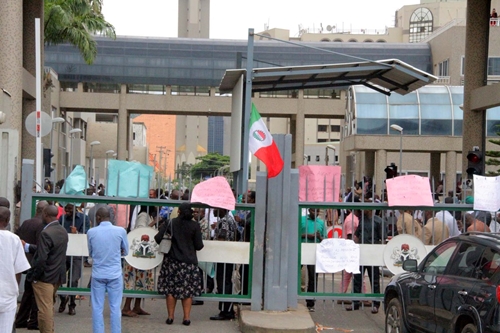 As at the time of filling this report, heavy anti-riot policemen were at the main gate of the building.
