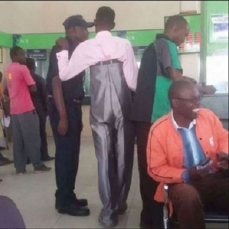 This man appeared in a bank wearing this weird pair of trousers and social media users went wild with laughter.