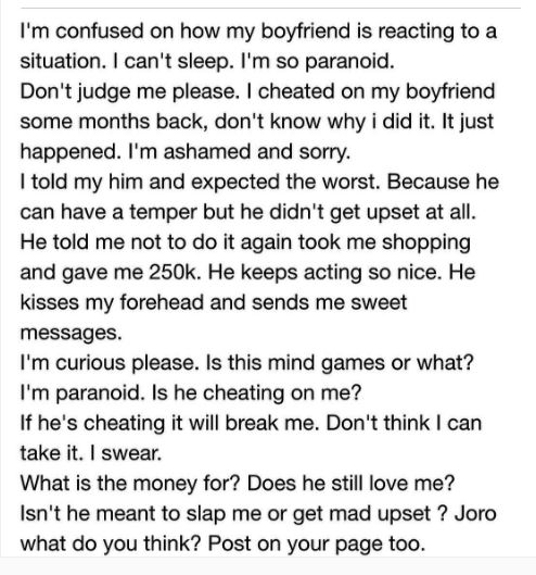 lady has written to relationship therapist, Joro Olumofin contemplating