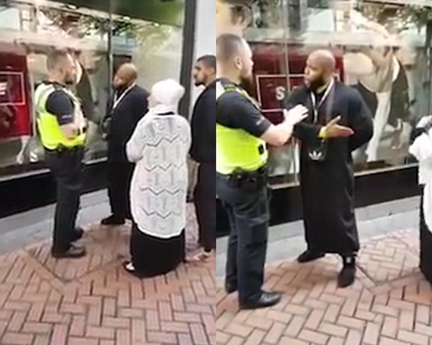 Islamic street preacher has been filmed angrily shouting at a police officer