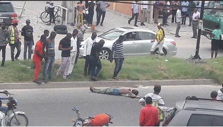 The dead man lying on the road after he was beaten to death