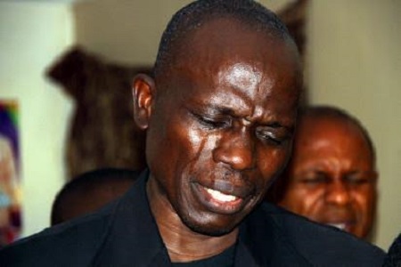 Mr Elisha was spotted weeping bitterly with tears streaming down his face at what appears to be a prayer session.