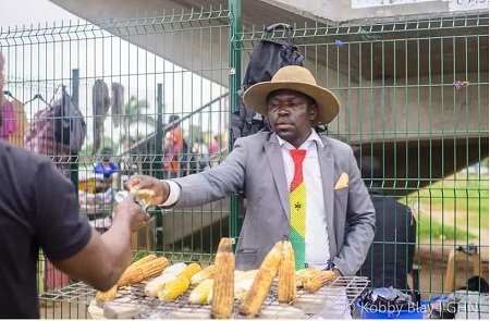 On health, the stylish corn seller believes he is probably Accra’s “best seller of good healthy roasted corn” as he doesn’t allow his customers to touch the corn until after they have purchased it from him. He enthused to Blay, “I don’t want my customers to blame me for cholera”