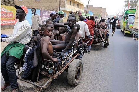 Teenage boys in Nairobi were paraded by their older ones on major