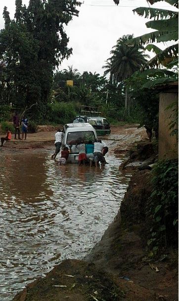 "This Umuahia road (federal govt. road) our bus got stucked. It