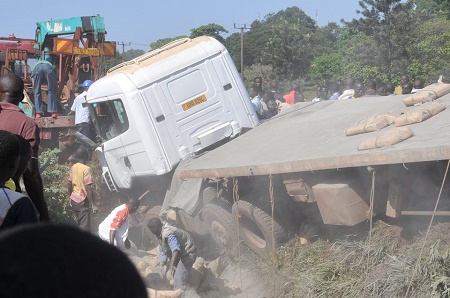 in Uganda involving a cement truck carrying about 600 bags of cement.