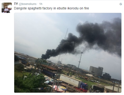 fire as a warehouse belonging to Dangote Group of Companies in Ebute,