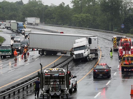 At the time of this report, the trailer is still resting on an ash Honda Academy with passengers inside.
