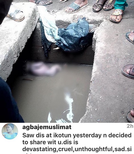 "This dead little innocent soul was just found inside the gutters of the densely populated ikotun market in Lagos.