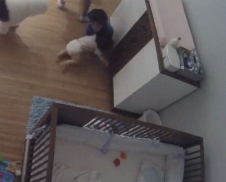 share a video which shows the moment her baby fell from a changing