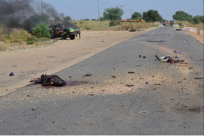 According to preliminary report, a pick up van with nine persons on board emerged from a bush path to join the road to Gubio town. It exploded killing all the persons on board.