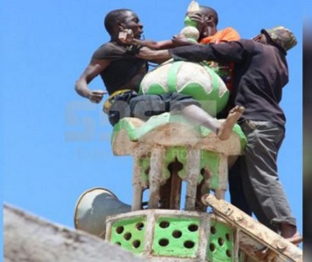 His mother, Hadija Wambui, broke into tears as the crowd pleaded with him to climb down from the over 20 feet tower.