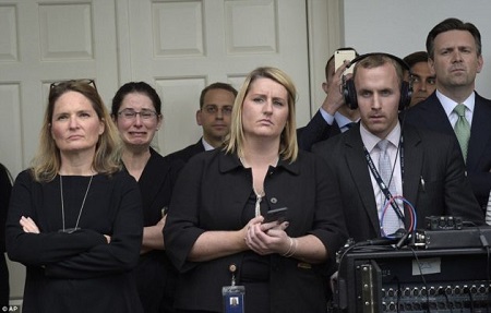 The photos are those of the staff of United States seat of power, the White House, looking really gloomy and sad.