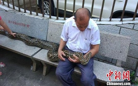 “The python is very tame and listens to Shi Jimin,” one of Shi’s neighbors told China News Service. “Everyone has watched it grow — just like watching a child grow up.”