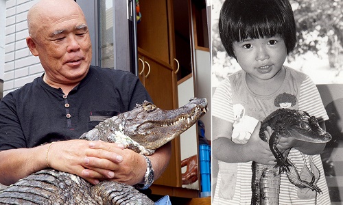 Nobumitsu Murabayashi loves showing off his giant alligator