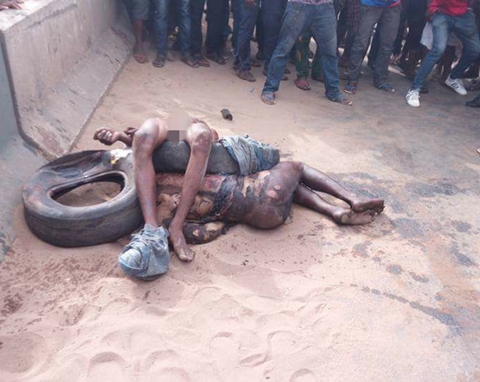 Two notorious robbers terrorizing Mgbuka Obosi, Onitsha, Anambra State, were set ablaze, today, by an angry mob.