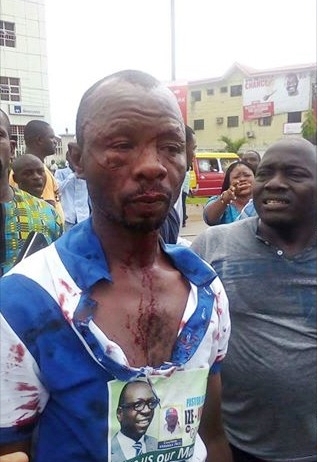 PDP party supporter wearing a t-shirt of Ize Iyamu, was allegedly