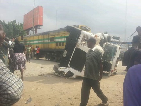 About two people were left seriously injured after a trailer rammed into a speeding train in Aba, Abia state.