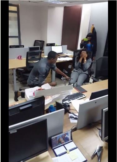 A sensational marriage proposal involving workers recently took place at the cozy premises of a banking institution in Nigeria.