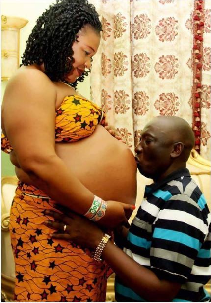 massive baby bump of his wife who seems due for delivery.