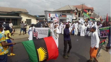 One of the banners paraded had the words "Victory for Trump, victory for the oppressed" in correlation to the Biafra cause.