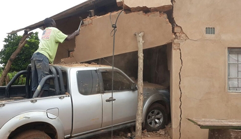 Scene of the incident: Vehicle having smashed into a house.