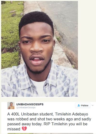 A 400 level student of the University of Ibadan, Adebayo Timilehin,