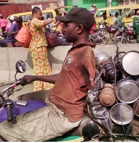 been spotted riding a bike around Ojodu-Berger in Lagos State.