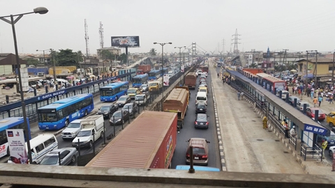 As of 1:30pm, the traffic had extended beyond the Iyano-Oworo axis