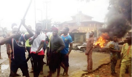 bonfire on the road as they chased away Hausa traders in the community,
