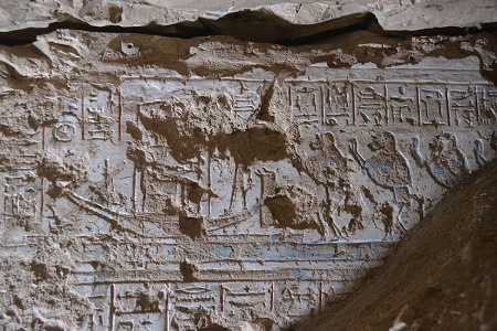 One wall of the tomb's entrance has a carving depicting four