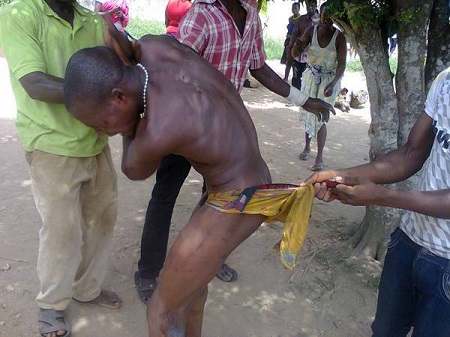 A man identified as Kehinde Rasak, has been severely tortured by some Lagos residents after they stripped him n*ked.